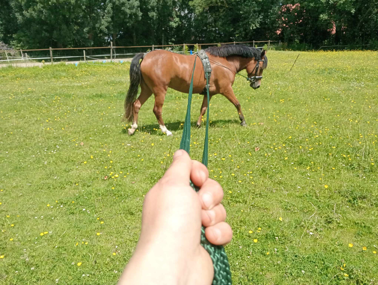 Longeren is een zeer fijne trainingsvorm voor paarden: je laat je paard in een cirkel om je heen lopen aan een enkele of dubbele lange lijn zodat je beweging, balans en communicatie verbetert zonder gewicht op de rug.