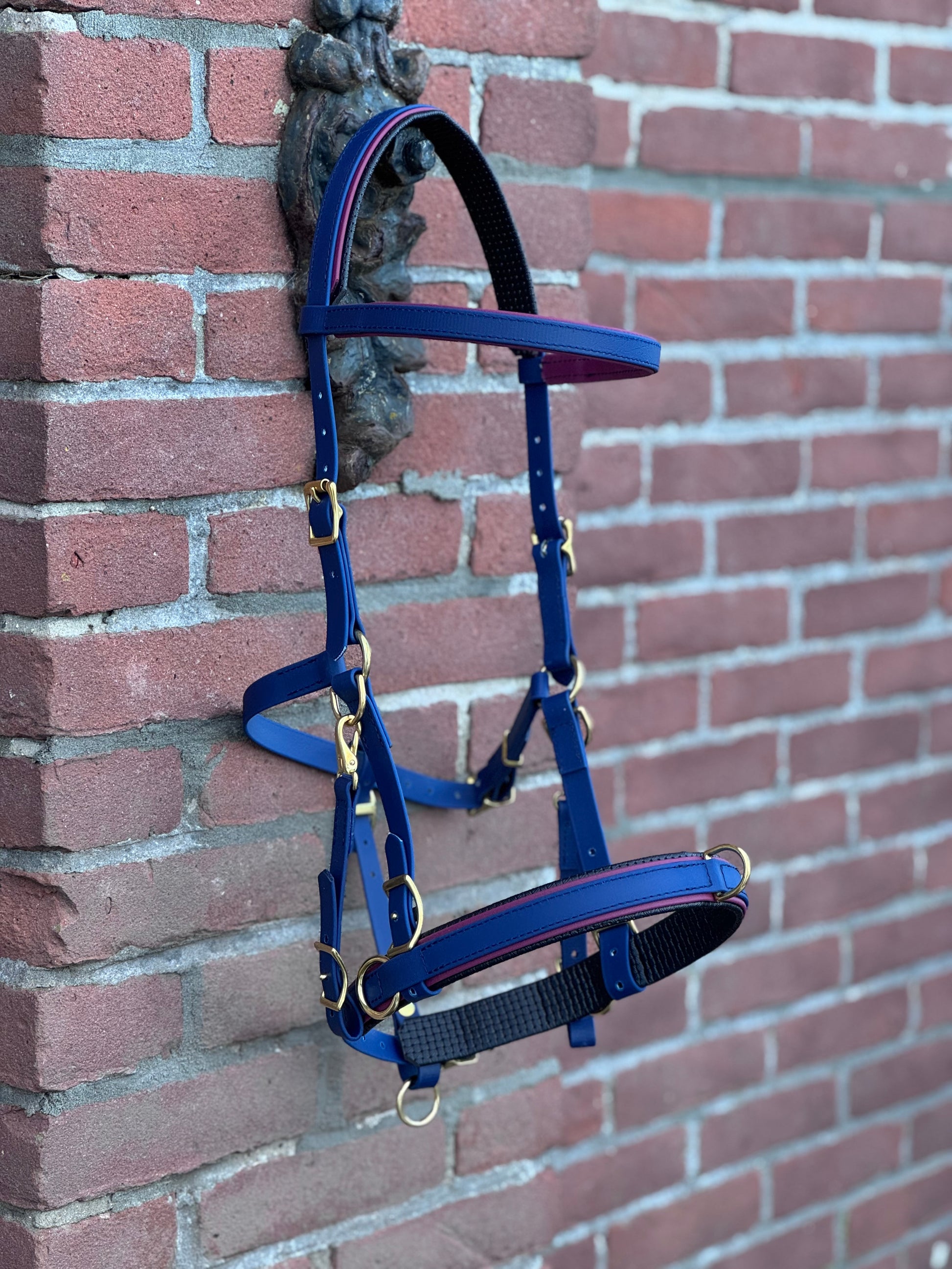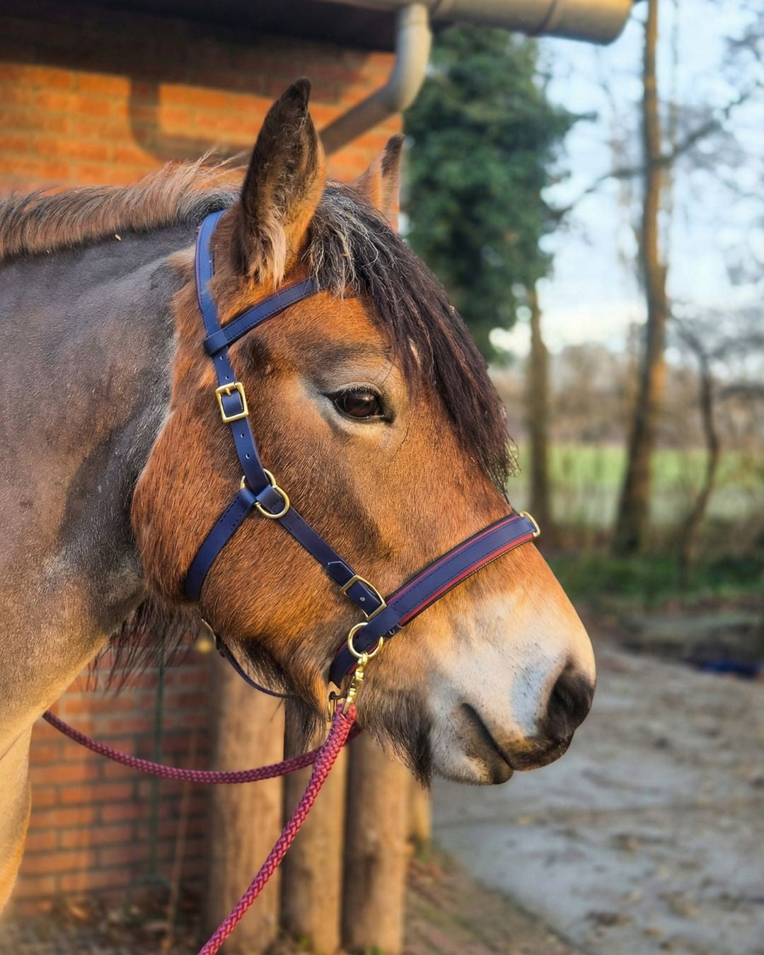 Misschien heb je een paard met een groot en / of breed hoofd en vallen veel hoofdstellen in het niet op jouw paard. Kaptoom Keevan wordt gemaakt van 19mm breed Beta Biothane voor het gehele hoofdstel. Ook de neusriem wordt extra breed onderlegd met 25mm breed Biothane.