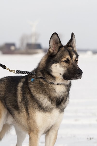 If you want to be sure of the correct size, measure the neckline (blue line) and the Kop circumference (red line) and specify this size when ordering. As a result, the slip-neck band will fit well and also have enough room to get its head over the dog.